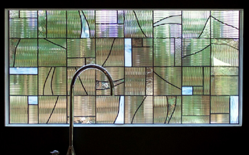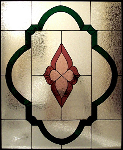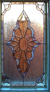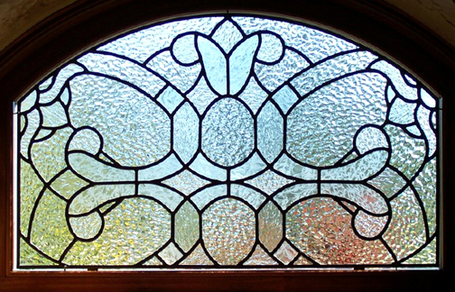 To design this window, Rebecca and her client worked to capture just the right medieval look for his candle lit wine cellar. It was decided to use all clear textured glass and a black patina finish. Just beautiful!!! |