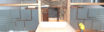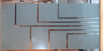 Rebecca took on this challenge to sandblast these two large pieces of glass. Designed with a modern geometric look, one mirrored the other. She said she had to pay close attention mostly to the consistency of the sandblasting, and that she did, and did it well.