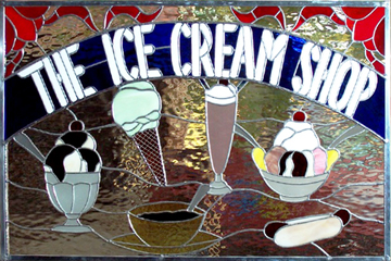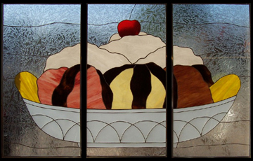 This window was a request in memory of a beautiful teenage girl. It was created for her parents as a gift and to help bring some closure in their hearts. It bares their daughter’s initials along with her favorite things, cherries and flames. |